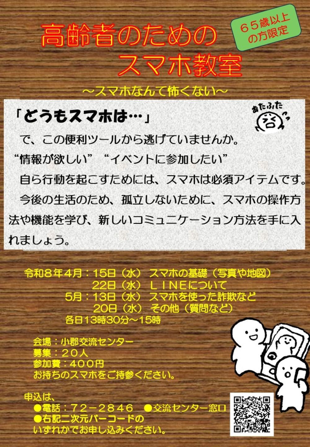 申込方法:お電話、交流センター窓口、チラシに記載の二次元バーコードのいずれかでお申し込みください。